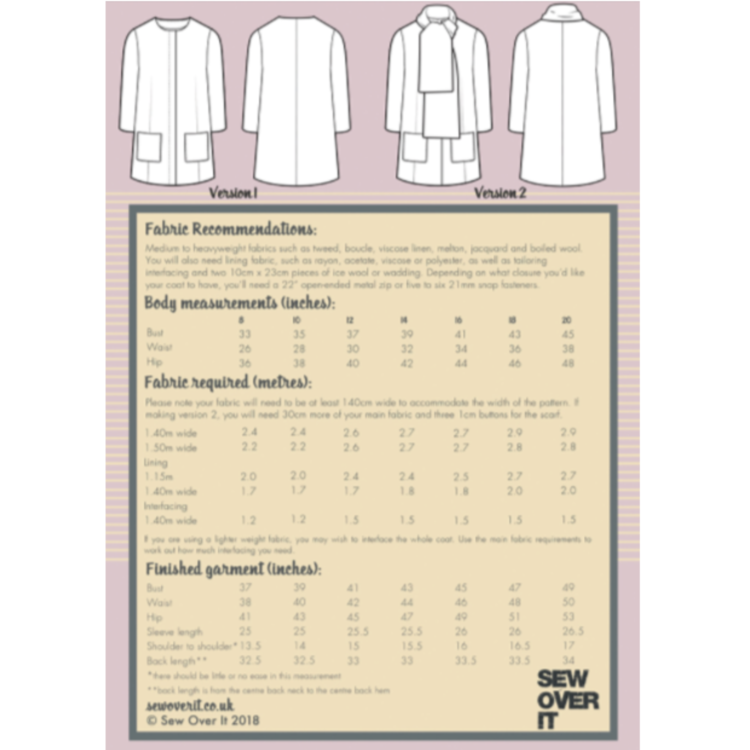 Sew Over It Chloe Coat Sewing Pattern Timeless Fabrics